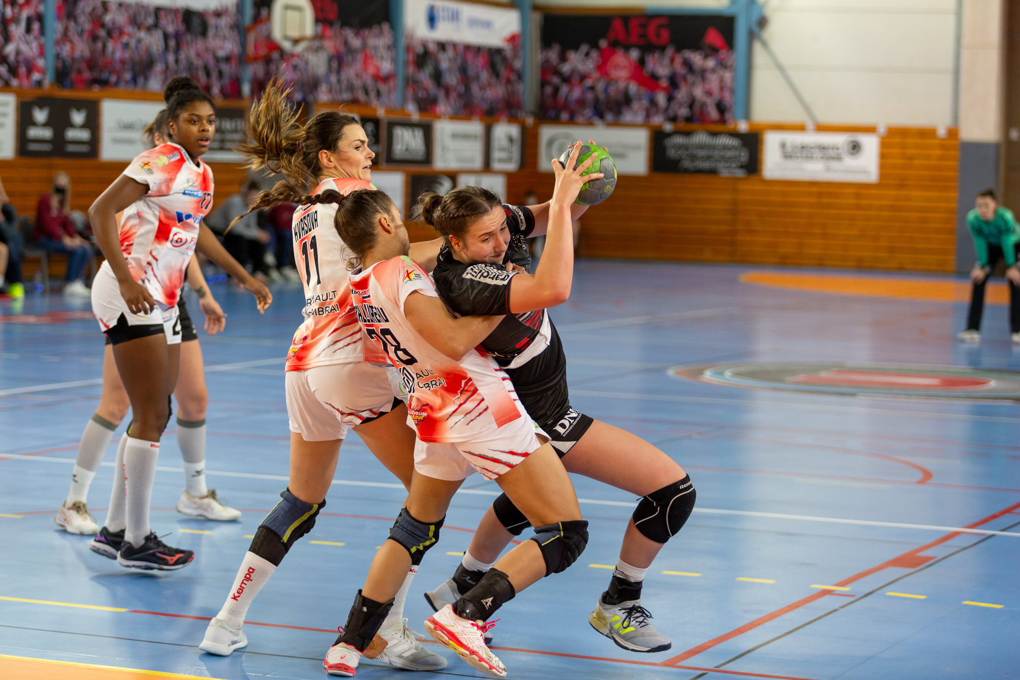 HANA KVASOVA, LEA BALLUREAU – LUDIVINE CRISPIN, LEA BALLUREAU, HANA KVASOVA – 20 Novembre 2021 Match de Handball de division 2 ACHENHEIM TRUCHTERSHEIM vs SAMBRE AVESNOIS