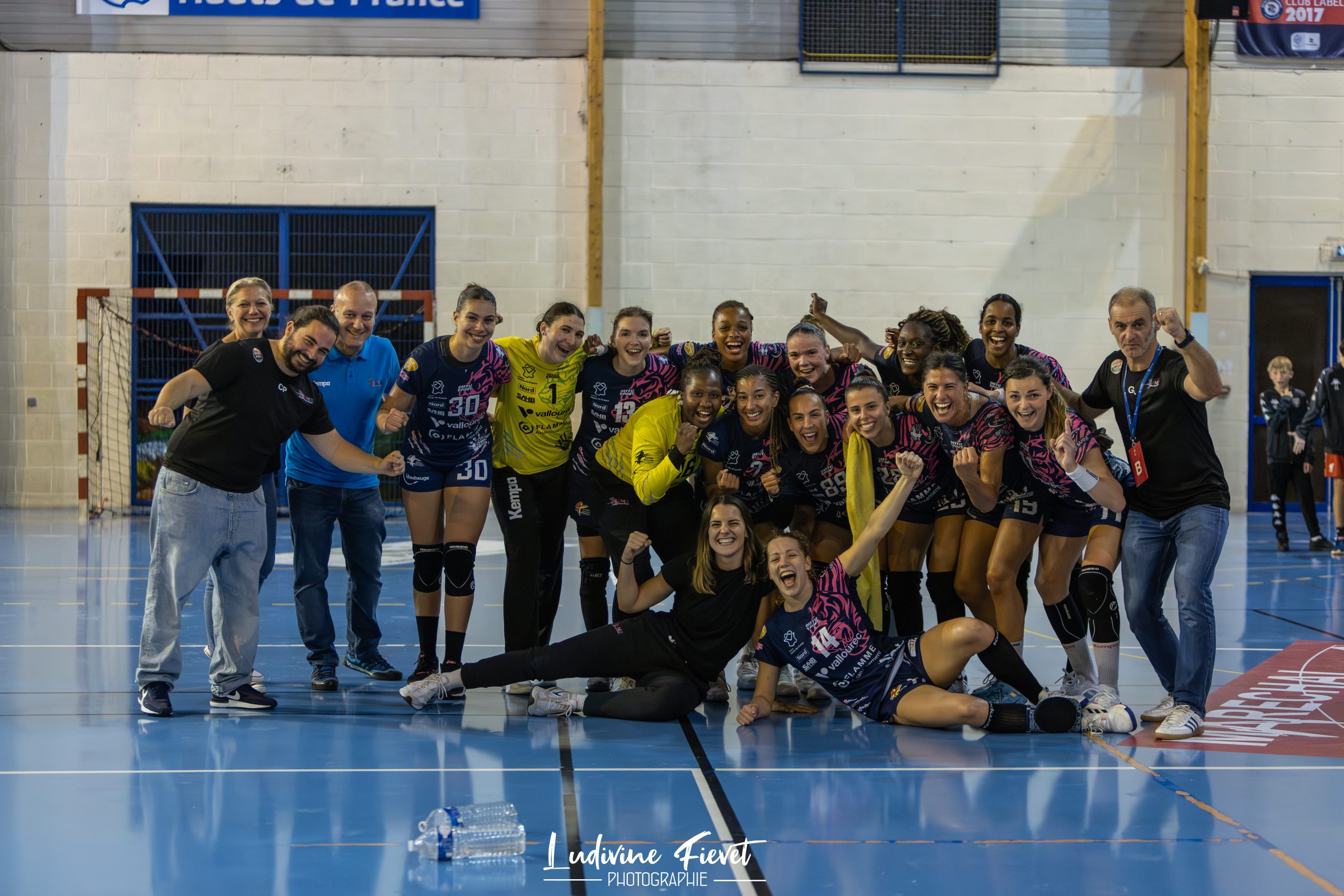 SYRIANE ADON, Marijana ILIC, LEA BALLUREAU, JUSTICIA TOUBISSA ELBECO, Julie SIAS, Jovana KIPRIJANOVSKA, Ines GODET, HANA KVASOVA, Dounia Abdourahim, Camille-Victoire Tourigny, Camille AOUSTIN – SABRINA ABDELLAHI, Aminata Doucouré – SYRIANE ADON, SABRINA ABDELLAHI, Marijana ILIC, LEA BALLUREAU, JUSTICIA TOUBISSA ELBECO, Julie SIAS, Jovana KIPRIJANOVSKA, Ines GODET, HANA KVASOVA, Dounia Abdourahim, Camille-Victoire Tourigny, Camille AOUSTIN, Aminata Doucouré – Match de Handball Féminin de division 2 du 1er Septembre 2023 à la salle Coubertin de Maubeuge – SAMBRE AVESNOIS vs STADE PESSACAIS