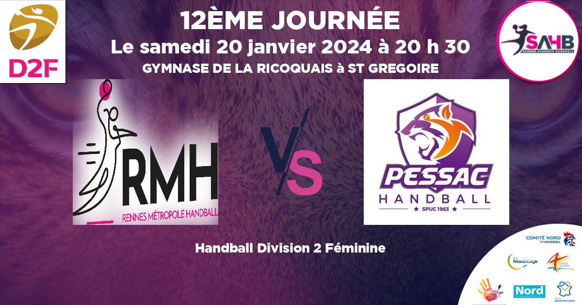 20 janvier 2024 RENNES METROPOLE vs STADE PESSACAIS handball Division 2 Féminine