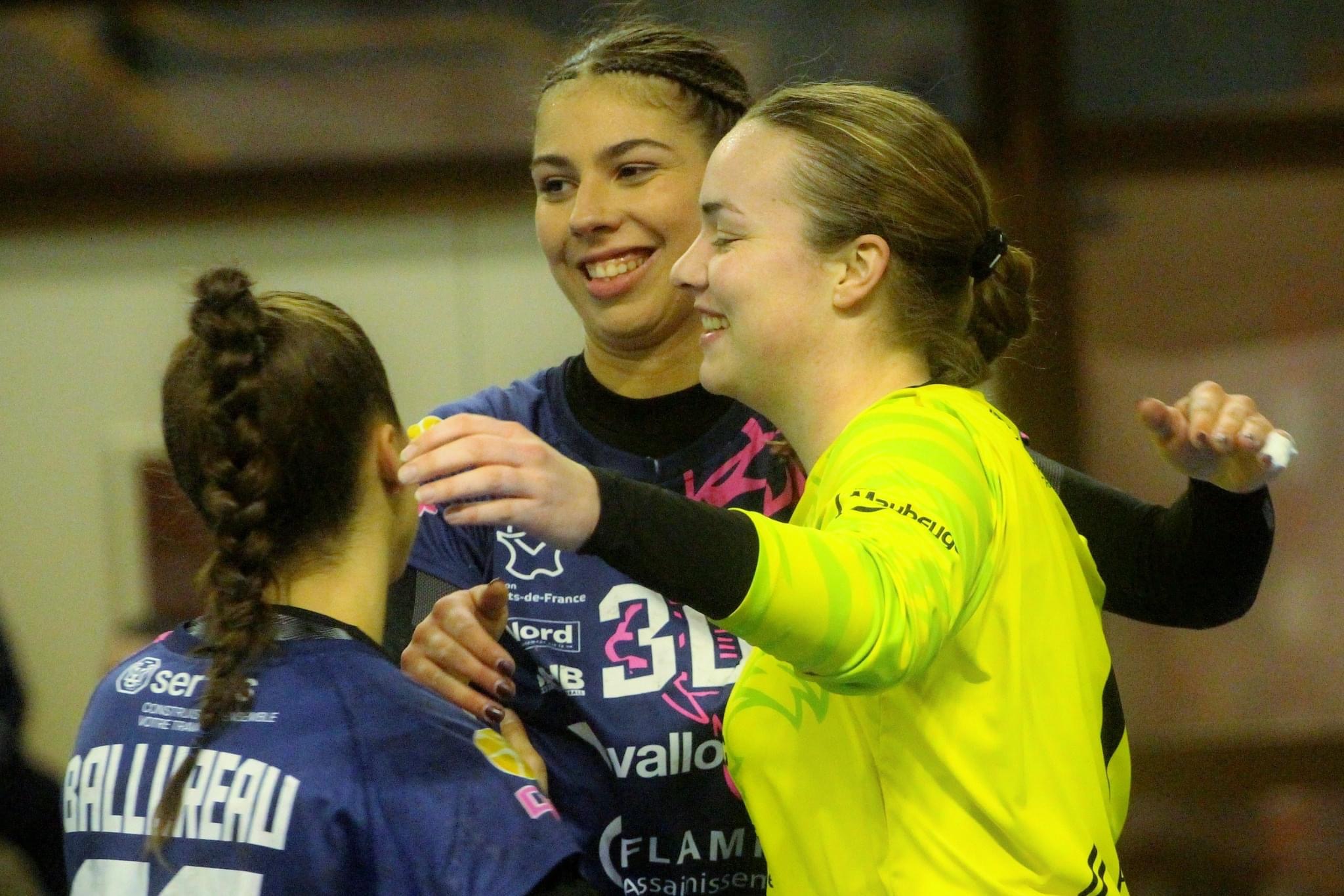 Jovana KIPRIJANOVSKA, LEA BALLUREAU – SENNA VAN GALEN, LEA BALLUREAU, Jovana KIPRIJANOVSKA – Match de handball du 2 Décembre 2022 SAMBRE AVESNOIS vs ASUL VAULX EN VELIN