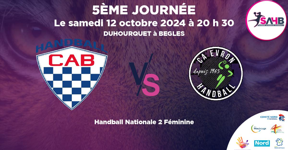 12 octobre 2024 CLUB ATHLETIQUE BEGLAIS vs CA EVRON handball Nationale 2 Féminine