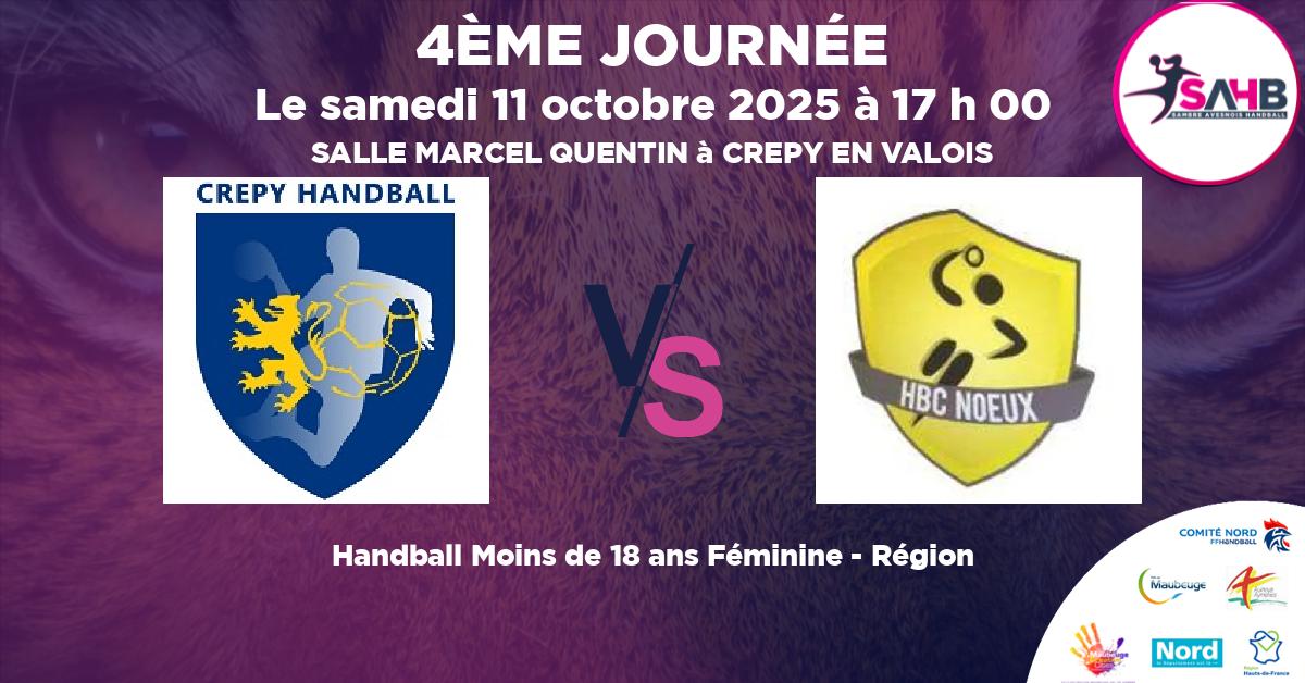 11 octobre 2025 CREPY EN VALOIS vs NOEUX LES MINES handball Moins de 18 ans Féminine – Région