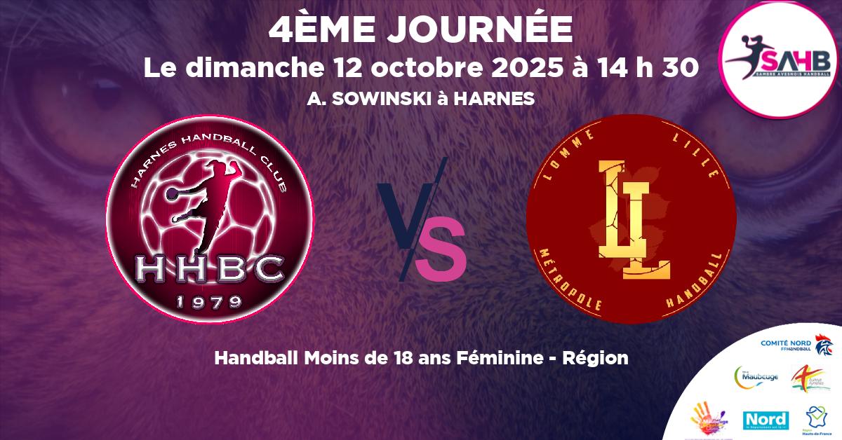 12 octobre 2025 HARNES vs LILLE METROPOLE LOMME – MON’S U18F handball Moins de 18 ans Féminine – Région