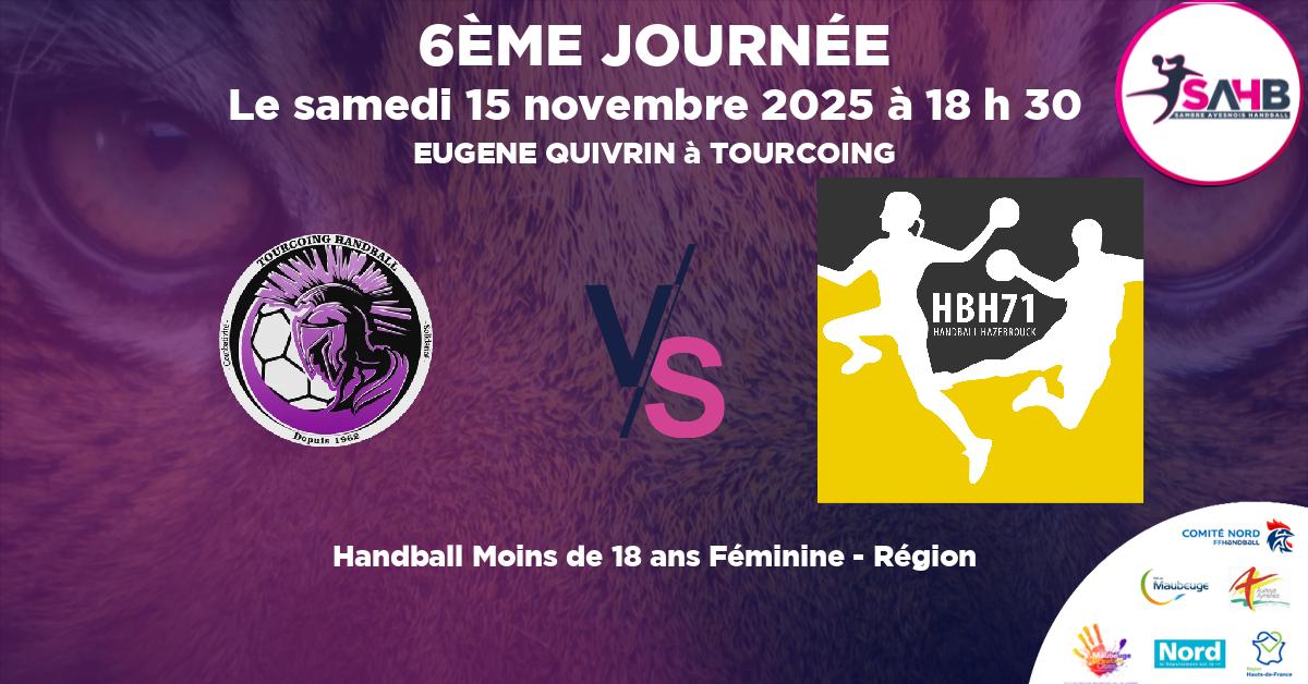 15 novembre 2025 TOURCOING U18F vs HAZEBROUCK 71 handball Moins de 18 ans Féminine – Région